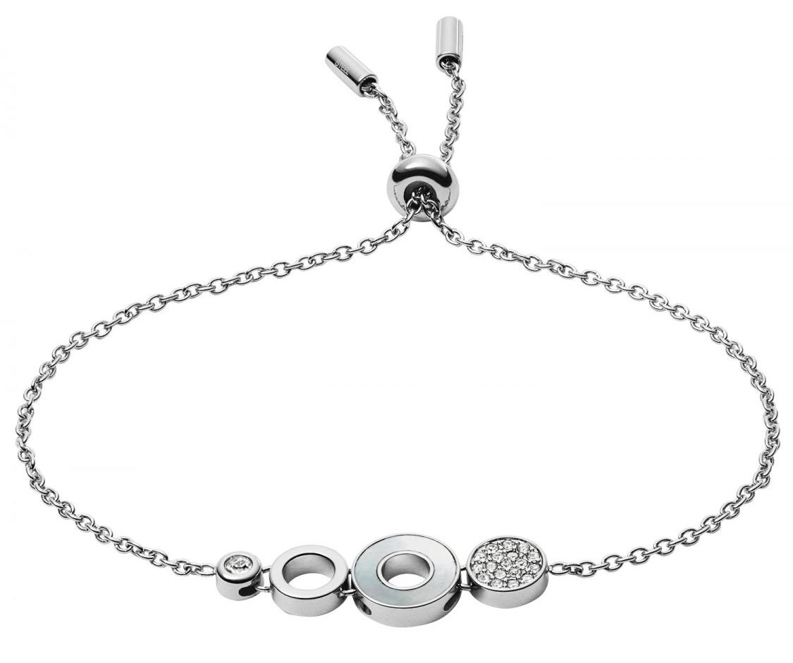 Elegantní dámský náramek ozdobí vaše zápěstí jemným řetízkem, v jehož středu najdete decentní doplněk ve tvaru čtyř propojených kruhů, jež jsou ozdobeny perletí. Zapínání náramku je vyrobeno z vysoce kvalitní chirurgické oceli s lesklou povrchovou úpravou. Šperk disponuje nastavitelnou délkou náramku, což umožní pohodlné nošení po celý den. Krásný jemný šperk FOSSIL s moderním vzhledem skvěle obohatí outfit jakékoliv slečny nebo ženy.