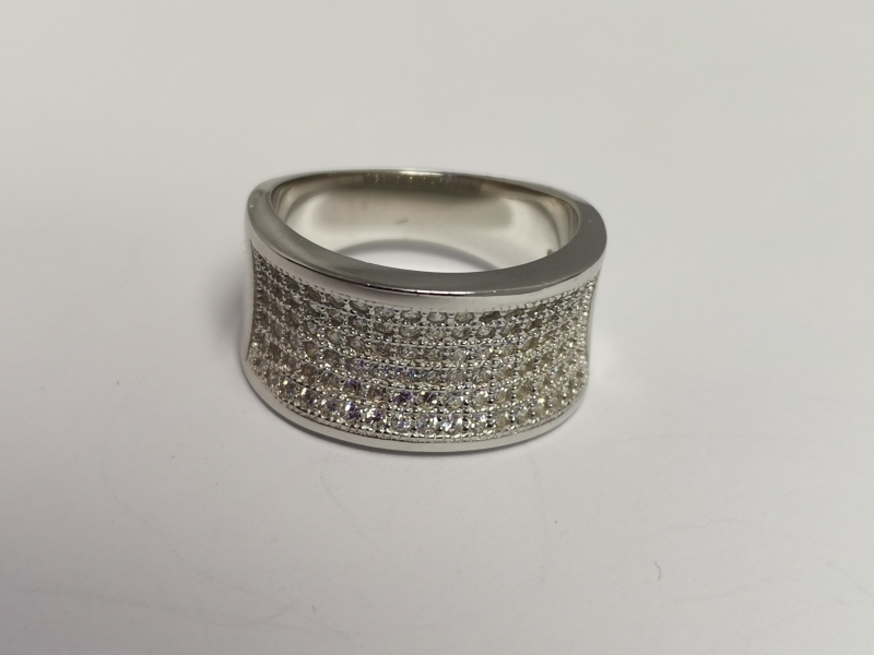 Exkluzivní masívní stříbrný prsten, který je celý zdoben menšími zirkony.