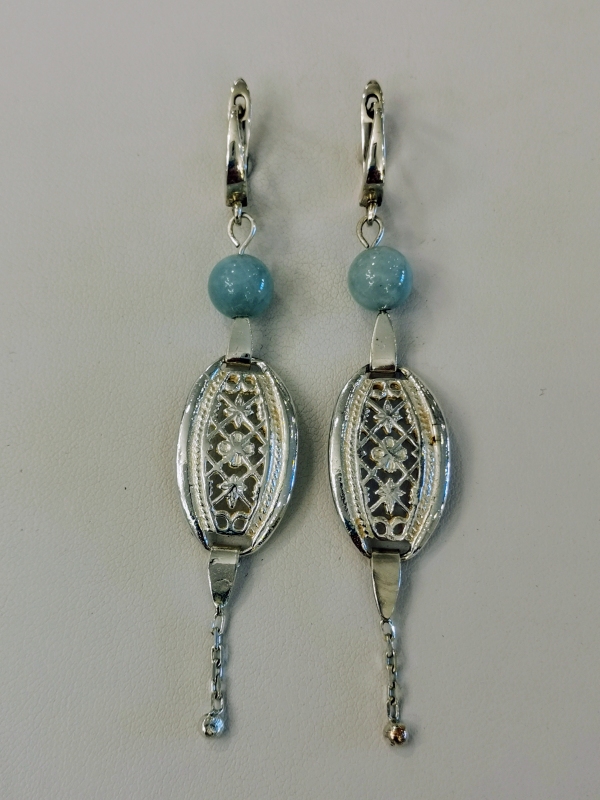 Exkluzívní stříbrné naušnice s akvamarínem. Naušnice jsou okouzlující, krásně řemeslně zpracované. Jsou to jedinečné naušnice, vyrobené na zakázku.