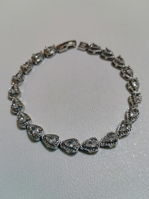 Luxusní náramek zdobený broušenými bílými kameny ve tvaru kapky. Náramek vypadá honosně, je to velmi atraktivní šperk.