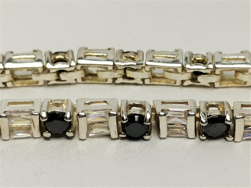 Luxusní stříbrný náramek zdobený broušenými bílými a černými kamenyNení skladem/ ks