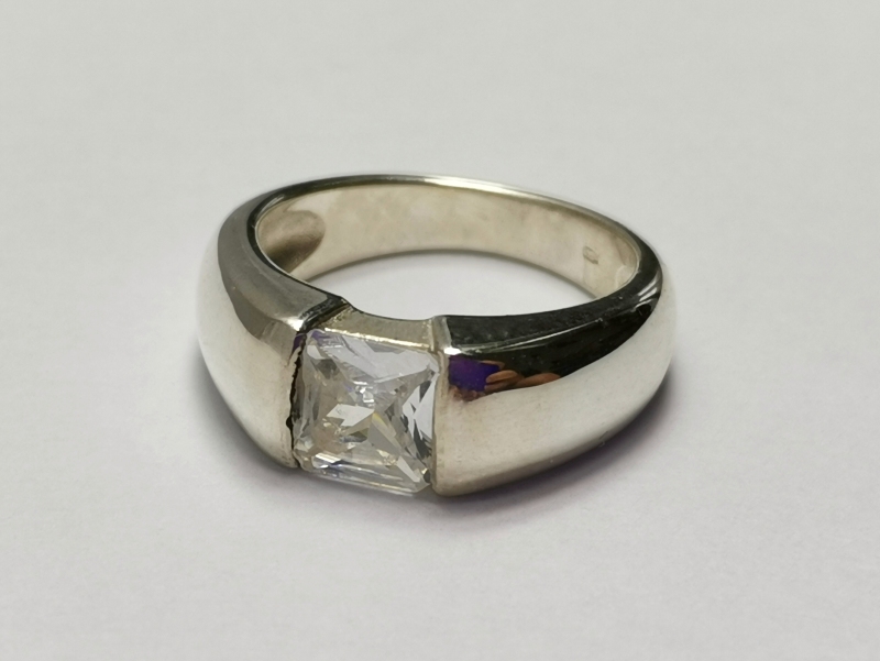 Masívní stříbrný prsten s velkým bílým zirkonem