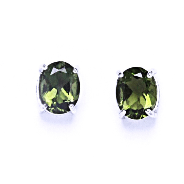 Naušnice z broušeného oválného vltavínu vsazeného do stříbra. Naušnice jsou jednoduché, ničím nezdobené. Jednoduchost podtrhuje krásu vltavínu.