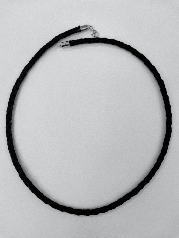 Černá splétaná kůže na krk se stříbrným zapínáním.