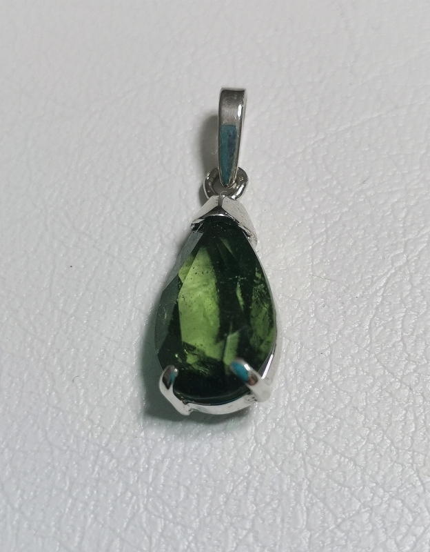 - Přívěšek z broušeného vltavínu s masivním ouškem ze stříbra