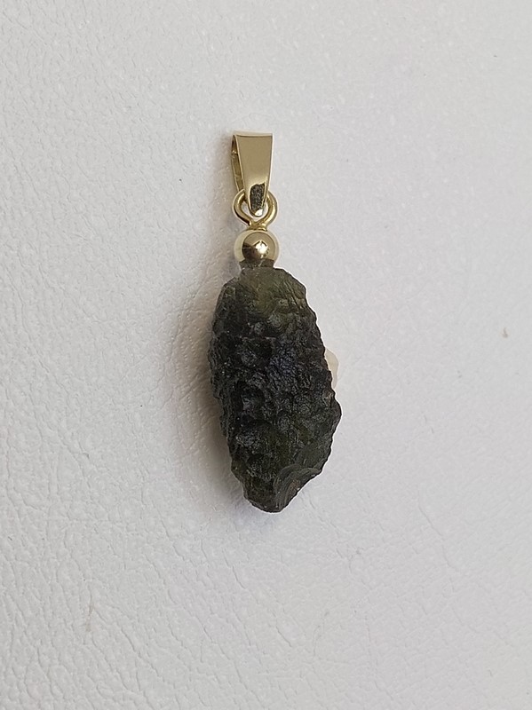 - Přívěšek z přírodního vltavínu s masivním ouškem ze žlutého zlata