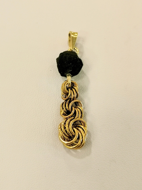 Přívěšek z přírodního vltavínu s ouškem ze žlutého zlata, zakázková ruční práce.