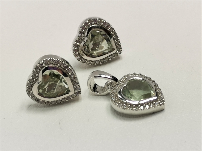 - Stříbrná souprava srdce s přírodním ametystem a bílými zirkony, rhodiovaná