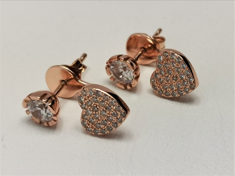 Naušnice vypají v uších skvěle, jsou nevšední, originální. Do dírky se vloží horní část naušnice s tyčkou, to znamená, že v dírce budete mít velký zirkon. Vzadu se zapne puzetou, na které je připojeno srdíčko se zirkony. To bude koukat přesně pod vaším lalůčkem. Srdíčko vypadá jako by se pod uchem vznášelo, protože tyčka, kterou je na puzetu připojeno, zůstane skryta zezadu ucha.