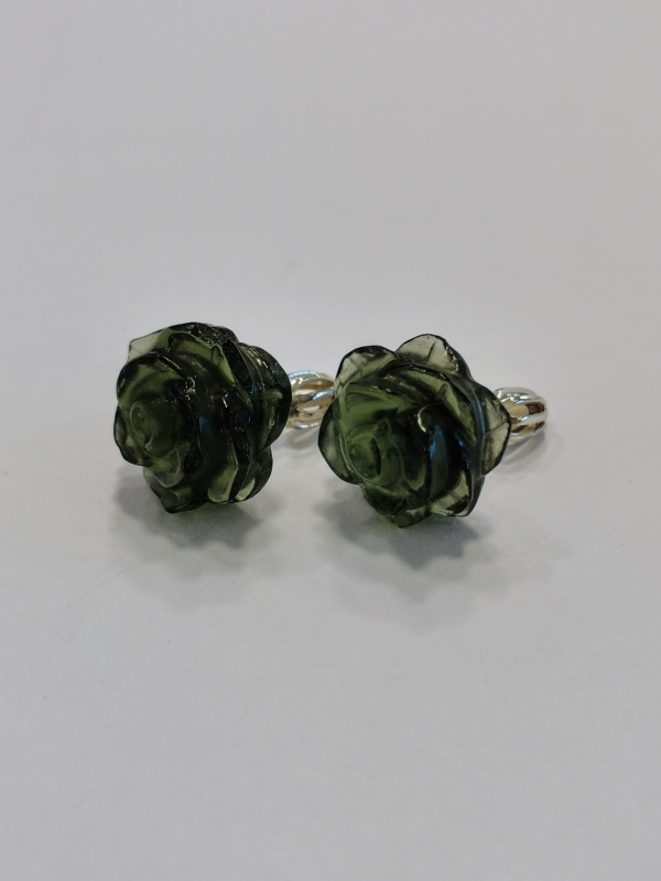 - Stříbrné naušnice růže vyřezané z vltavínu