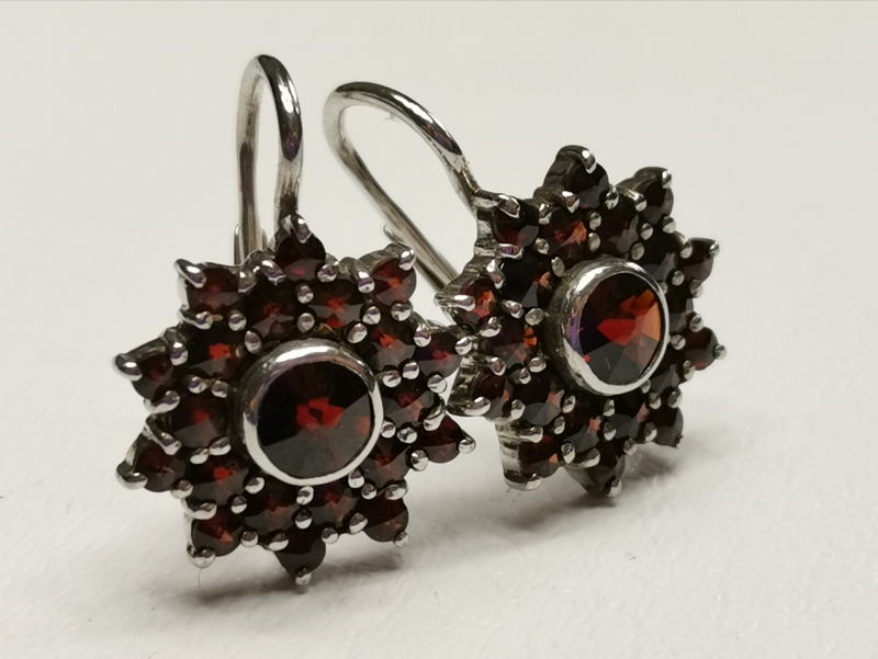 Stříbrné náušnice s českými granáty, rhodiované. Naušnice jsou klasického designu, v uších vypadají skvěle. Jsou velice elegantní.