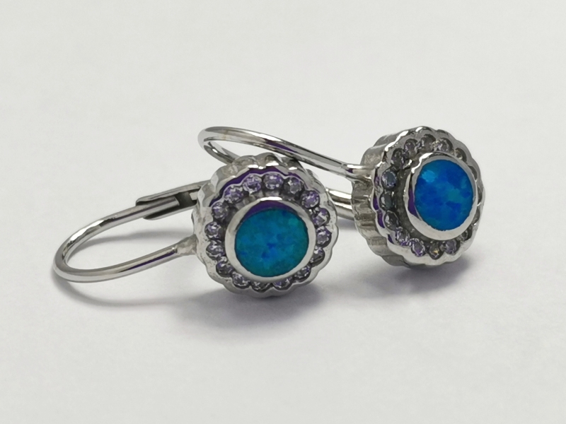 - Stříbrné naušnice s modrozeleným opálem a bílými zirkony, rhodiované