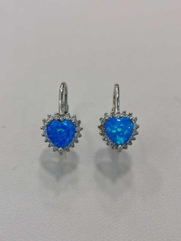 Nádherné náušnice s výjimečně modrozelenou barvou opálu ve tvaru srdíčka. Po obvodu jsou ozdobené čirými zirkony. Náušnice mají oblíbené klasické zapínání.