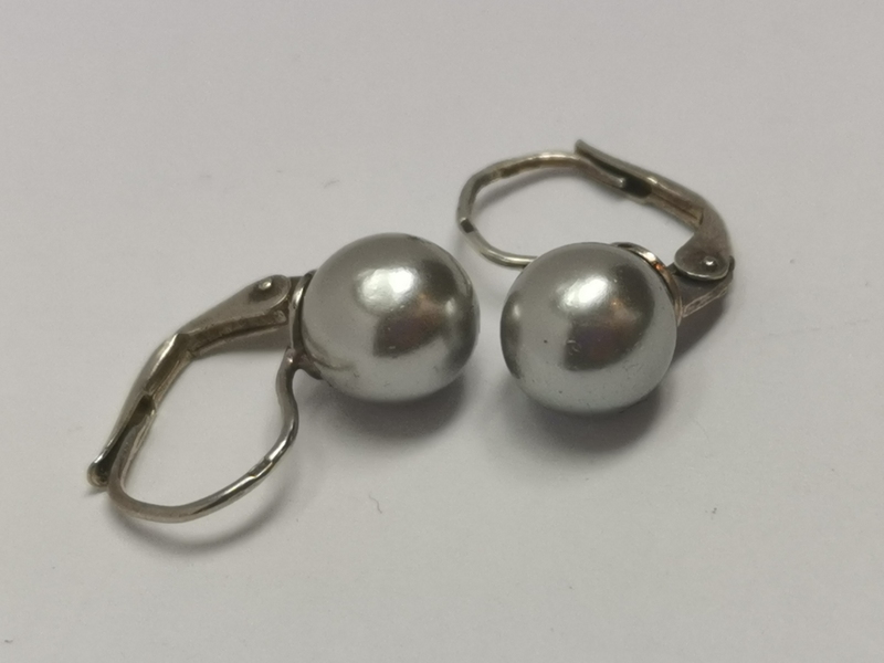 Krásné stříbrné naušnice s perlou jemně šedé barvy. Zapínání je klasické, klapka.