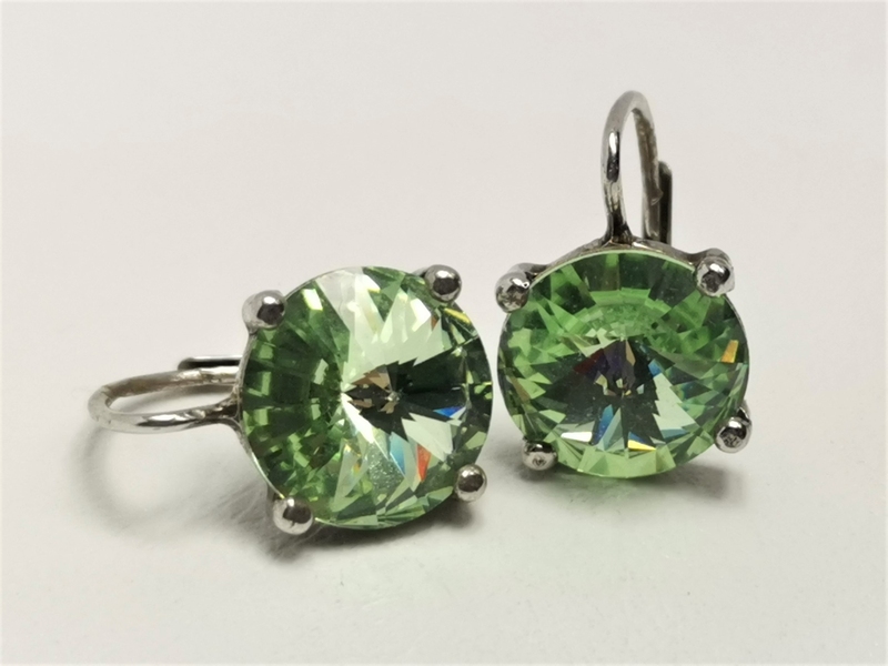 - Stříbrné naušnice s velkým světlezeleným Swarovski krystalem