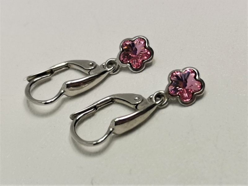 - Stříbrné naušnice s vísícími kytičkami s růžovým Swarovski krystalem