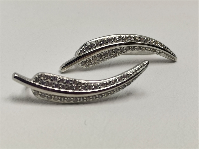 - Stříbrné naušnice se zirkony "zaušnice", rhodiované