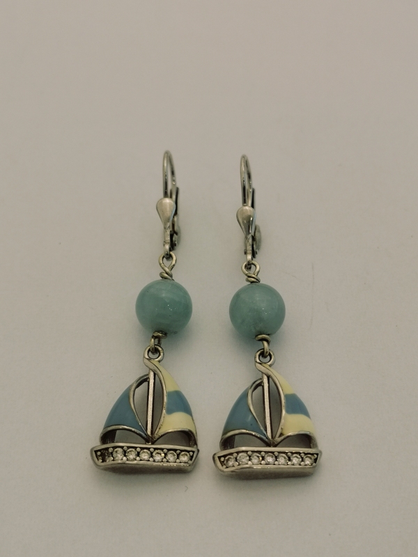 Stříbrné naušnice visací s akvamarínem a plachetnicíNení skladem/ ks