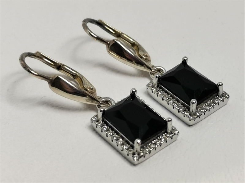- Stříbrné naušnice visací s černým kamenem a zirkony