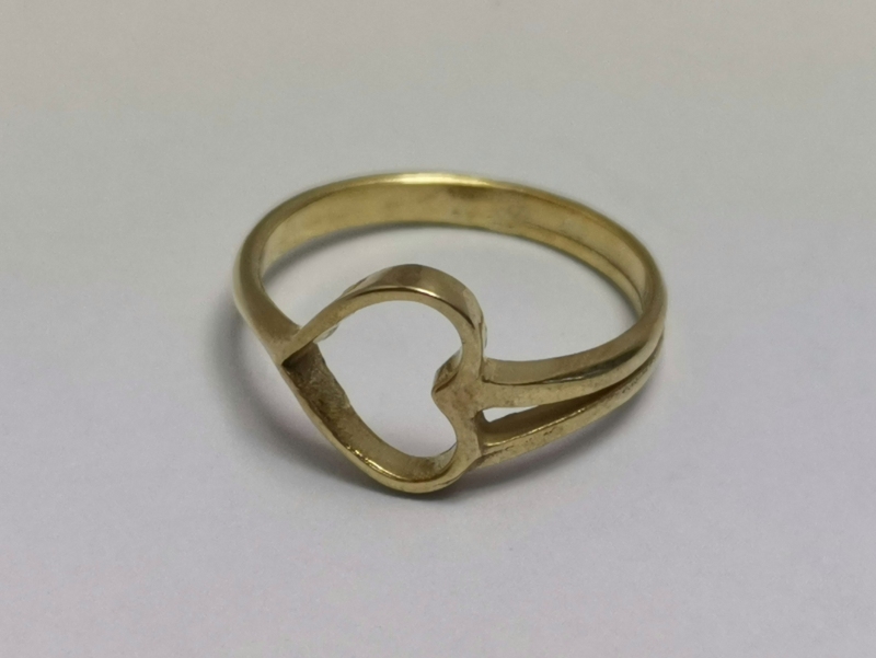 Stříbrný dámský prsten s motivem srdce, zdobený zlacením. Je to originální, ručně dělaný, autorský šperk Jiřího Moravce.
