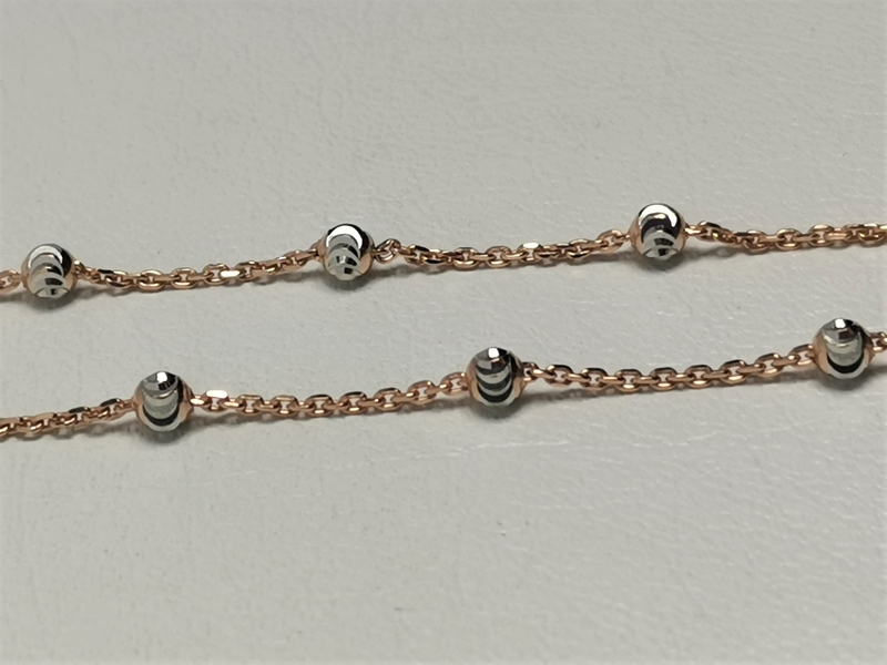 Stylový, elegantní náhrdelník je růzově zlacený. Jako kontrast vynikají broušené, lesknoucí se, stříbrné kuličky.