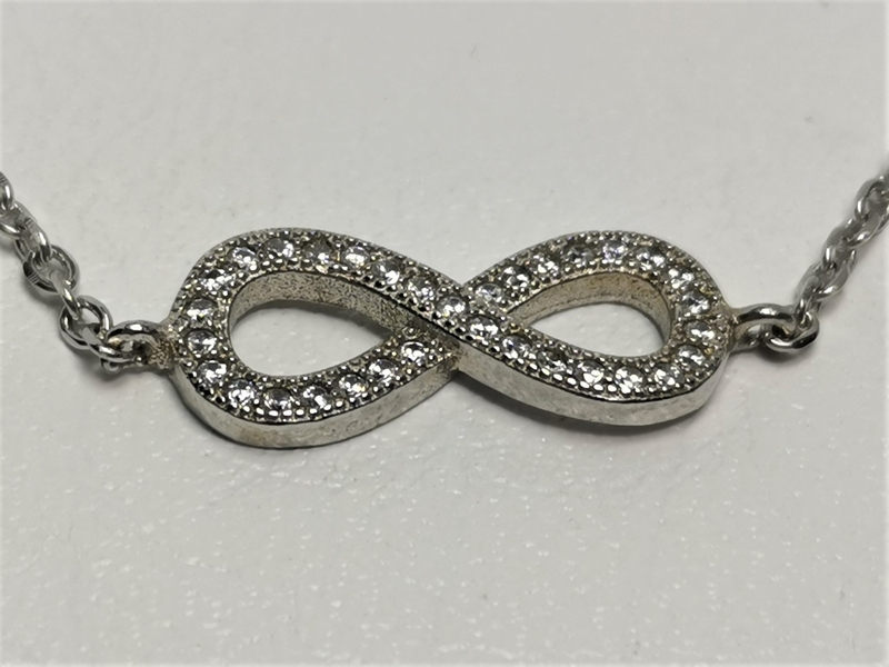 - Stříbrný náramek Nekonečno se zirkony, rhodiovaný