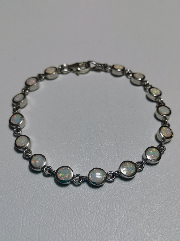- Stříbrný náramek s bílým opálem, rhodiovaný