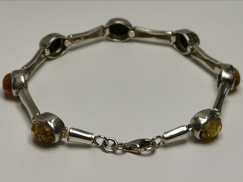 - Stříbrný náramek s jantarem
