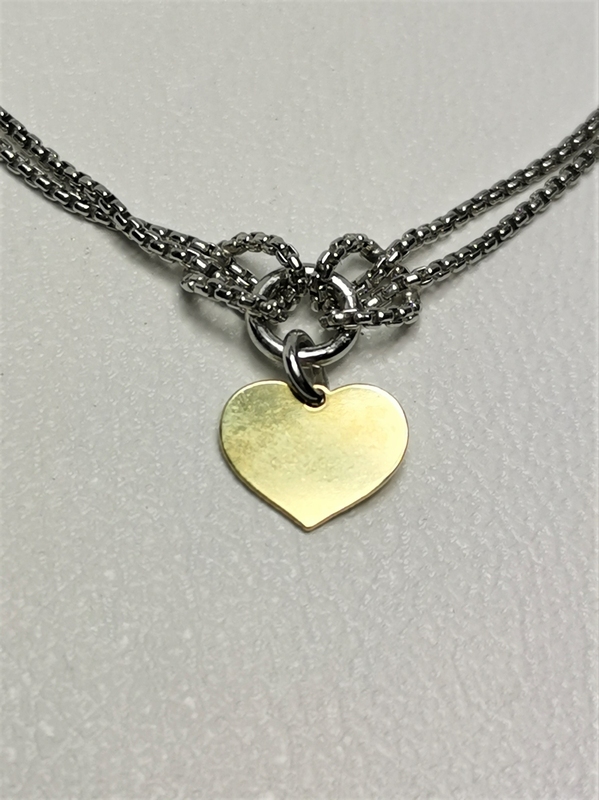 - Stříbrný náramek se zlaceným srdíčkem, rhodiovaný