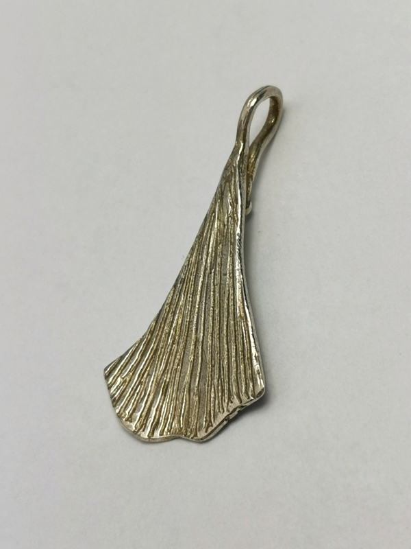 Stříbrný přívěs, který je tvořen z listu ginkgo biloba. Je to originální, ručně dělaný, autorský šperk Jiřího Moravce.