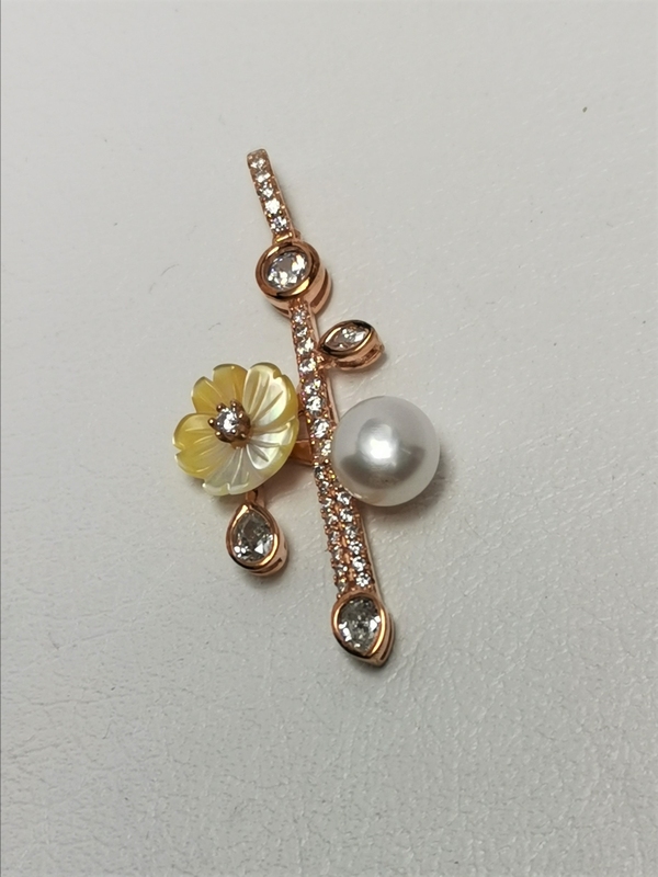 Přívěs je vyrobený ze sterlingového stříbra a je pokrytý růžovým 14-ti karátovým zlatem Au 585/1000.