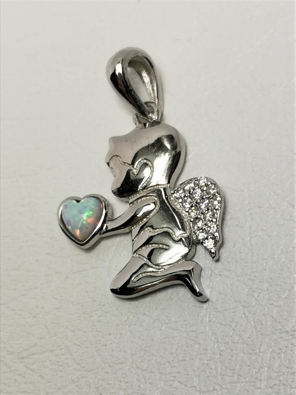 - Stříbrný přívěsek anděl s opálem a zirkony, rhodiovaný