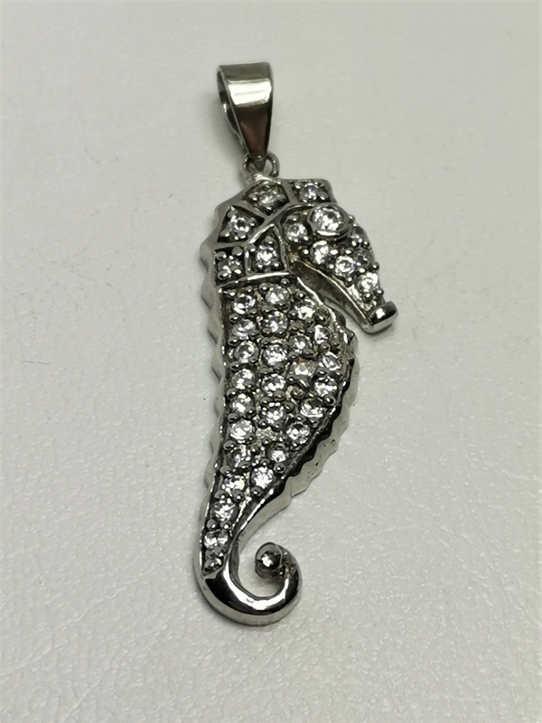 - Stříbrný přívěsek mořský koník se zirkony, rhodiovaný