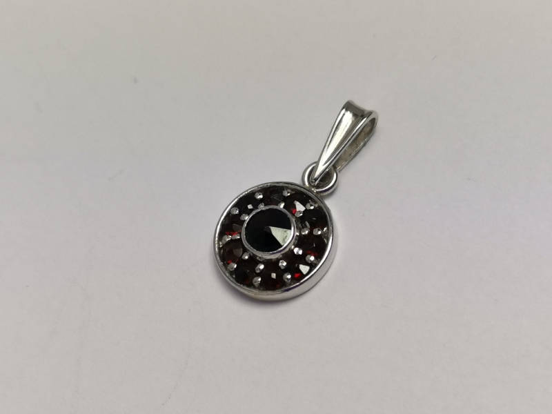 - Stříbrný přívěsek s českými granáty, rhodiovaný