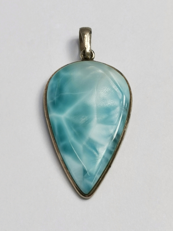 Stříbrný přívěsek s larimarem. Přívěs je okouzlující. Krásný kámen, který je bytelně vsazený tak, aby nebyla nijak rušena jeho krása.