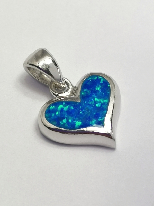 Stříbrný přívěsek - srdce s opálem, rhodiovaný