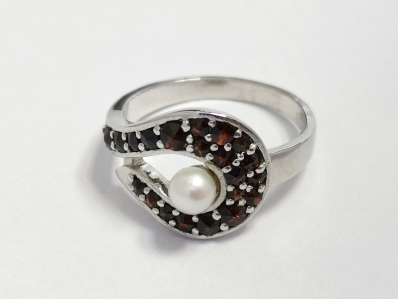 - Stříbrný prsten s českými granáty, rhodiovaný