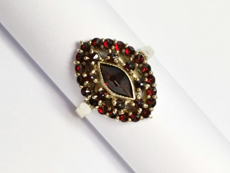 Stříbrný prsten s českými granáty, zlacenýNení skladem/ ks