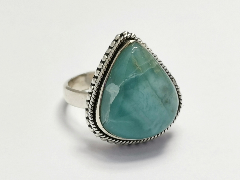 Stříbrný prsten s larimarem. Prsten je okouzlující. Krásný kámen, který je bytelně vsazený tak, aby nebyla nijak rušena jeho krása.