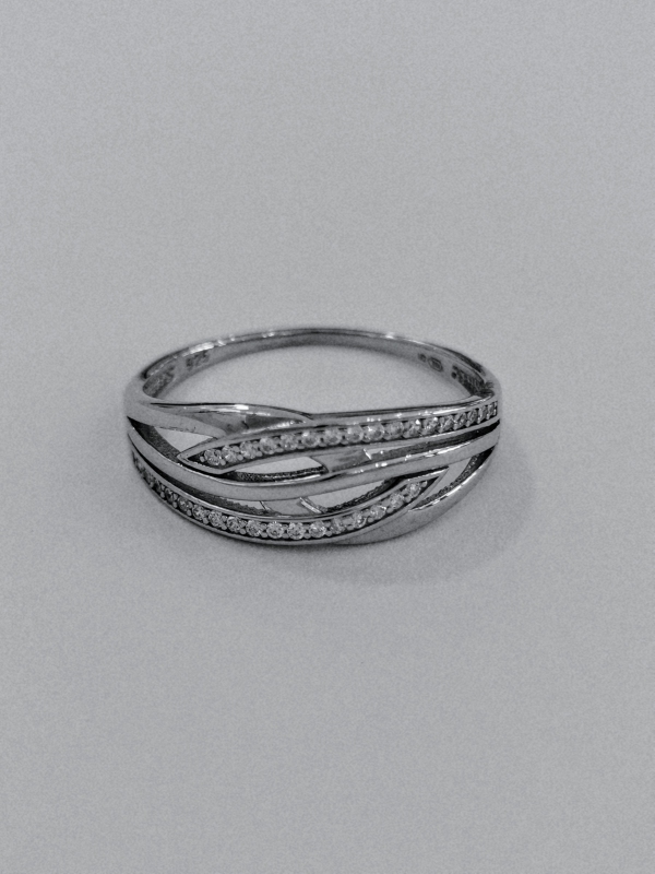 Stříbrný prsten se zirkony, rhodiovaný