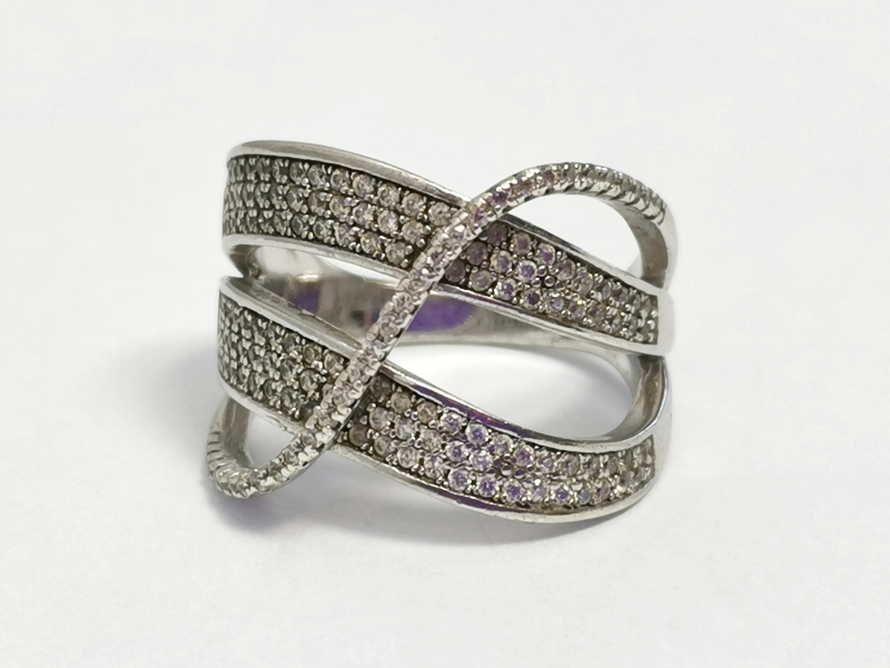 Stříbrný prsten se zirkony, rhodiovaný