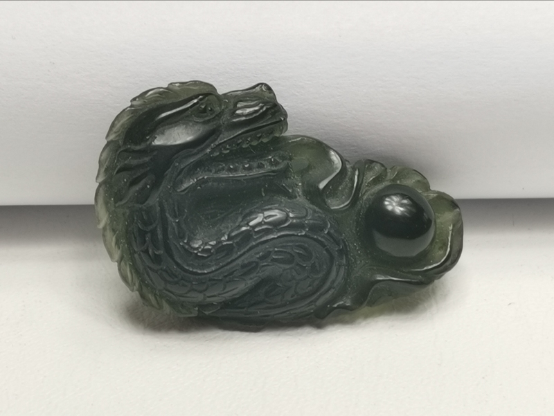 Vltavín glyptika drak, jedinečná nádherná ruční česká práce