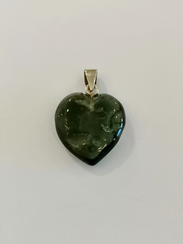 - Vltavínový přívěs ve tvaru srdce se závěsem ze stříbra