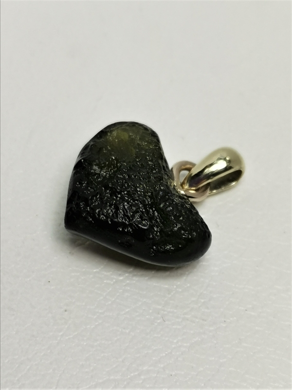 - Vltavínový přívěs ve tvaru srdce se závěsem ze žlutého zlata