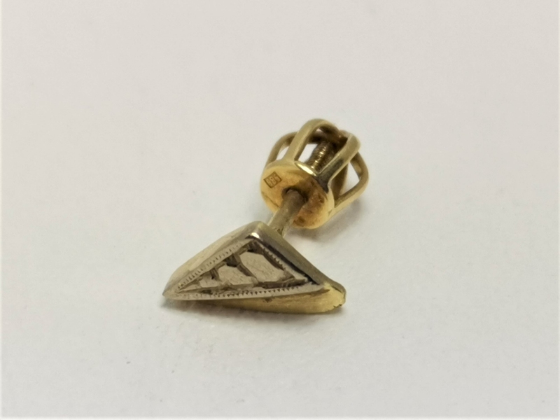 Zlatá naušnice ze žlutého zlata, zdobená zlatem bílým, na šroubek, 1ks