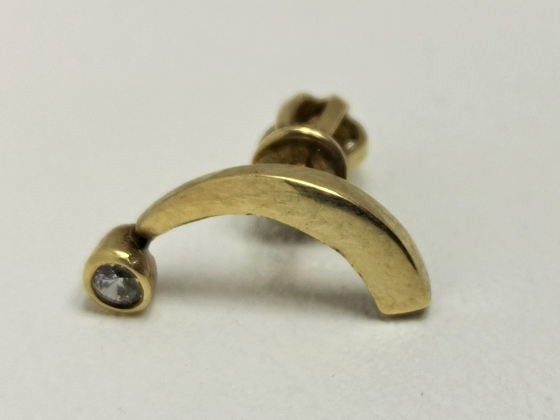 Zlatá naušnice ze žlutého zlata se zirkonem na šroubek, 1ks