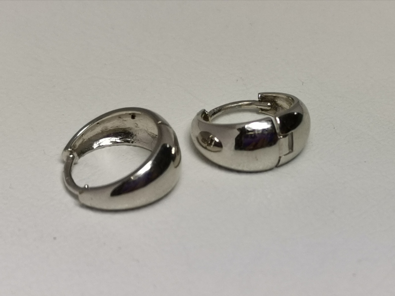 Zlaté bílé kroužky hladké s francouzským zapínáním, se kterým se snadno manipuluje. Kroužky se směrem od zapínání rozšiřují. Skvělý dárek pro ženu, která má ráda jednoduché, nezdobené tvary. Protože jsou kruhy úplně hladké mohou být také skvělým dárkem i pro muže.