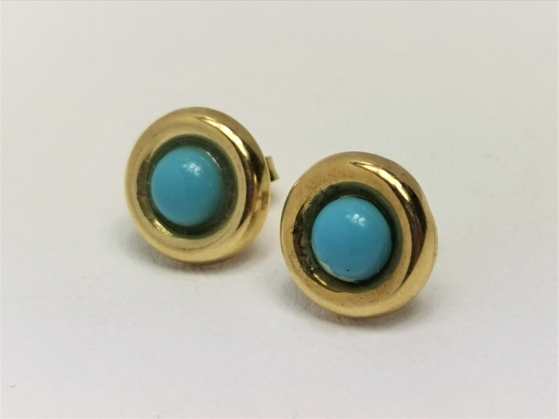 Zlaté naušnice ze žlutého zlata s tyrkysem, na puzetu