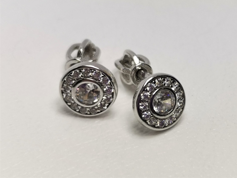 - Zlaté naušnice z bílého zlata s bílými zirkony na šroubek