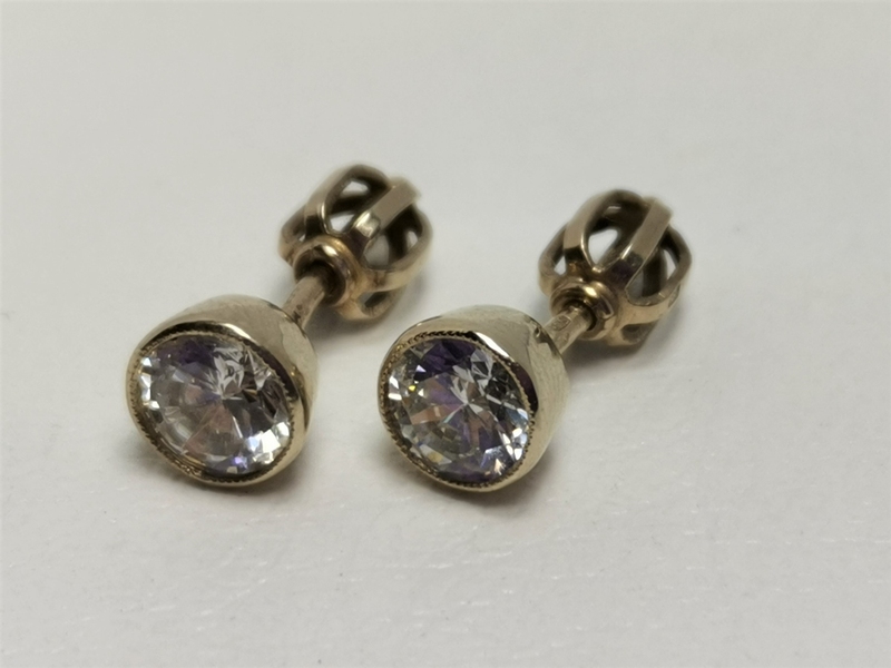 - Zlaté naušnice z bílého zlata s bílými zirkony na šroubek
